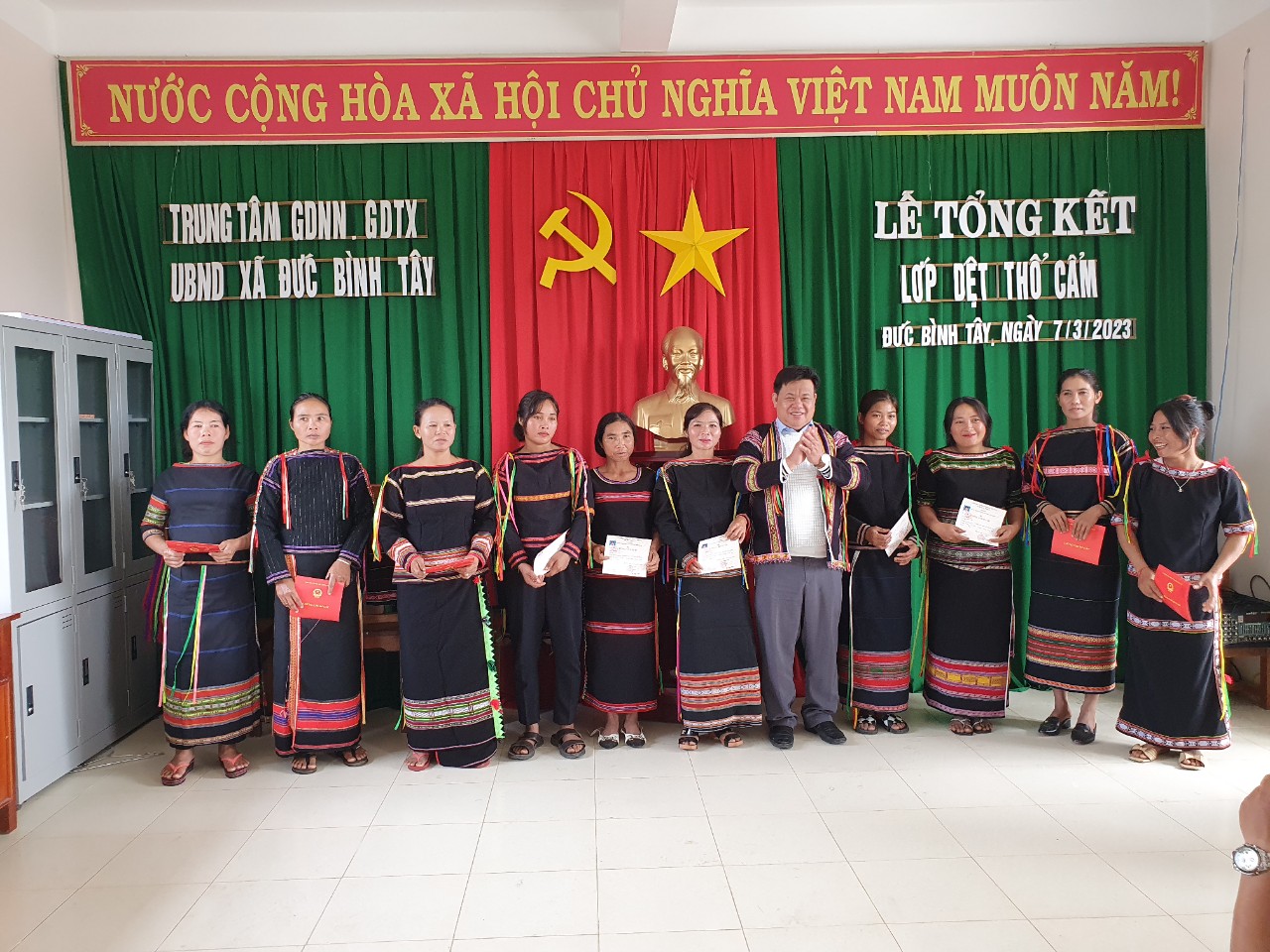 Ngày 7/3/2023 Trung tâm GDNN - GDTX và UBND xã Đức Bình Tây Tổ chức Lễ tổng kết dệt thổ cẩm năm 2023