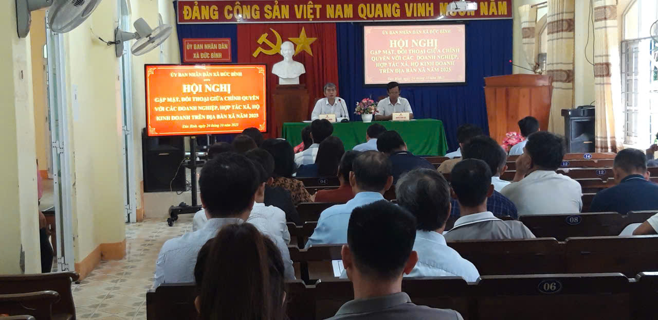Ngày 24 tháng 10 năm 2025, Ủy ban nhân dân xã Đức Bình tổ chức Hội nghị gặp mặt, đối thoại giữa chính quyền với các doanh nghiệp, hợp tác xã và hộ kinh doanh trên địa bàn xã. Tham dự hội nghị có đại diện lãnh đạo Đảng ủy, HĐND, UBND, Ủy ban MTTQ Việt Nam xã; đại diện các ngành, đoàn thể xã; cùng đông đảo các doanh nghiệp, hợp tác xã và hộ kinh doanh tiêu biểu đang hoạt động trên địa bàn.