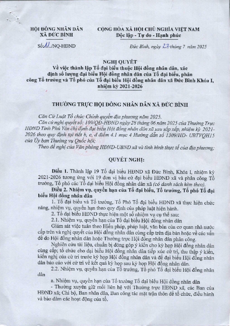 | Tiêu đề văn bản | Nghị quyết thành lập các Tổ đại biểu HĐND xã Đức Bình | ||